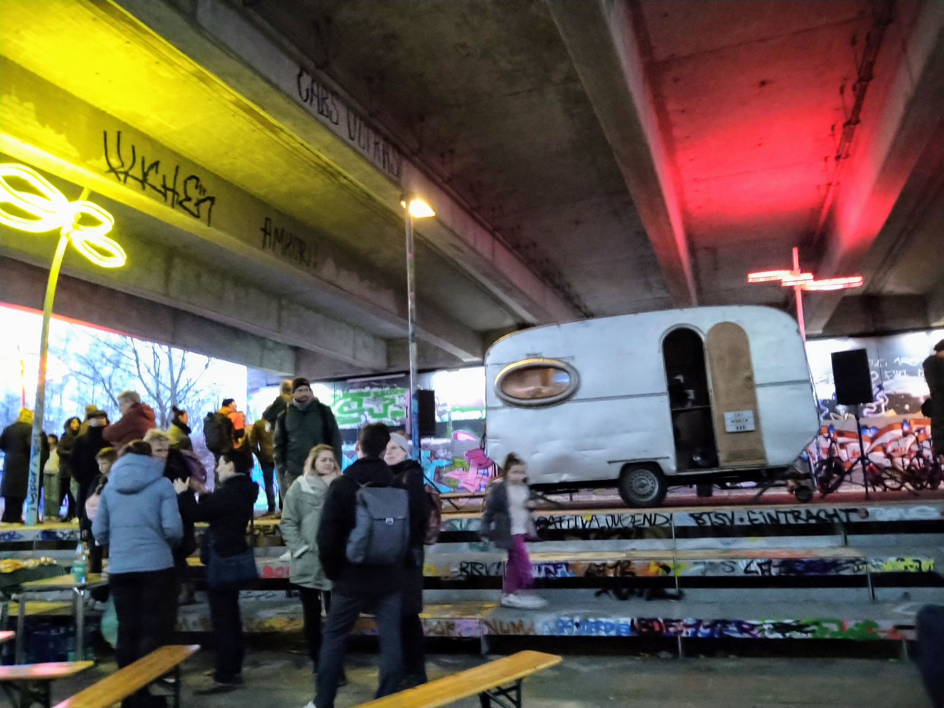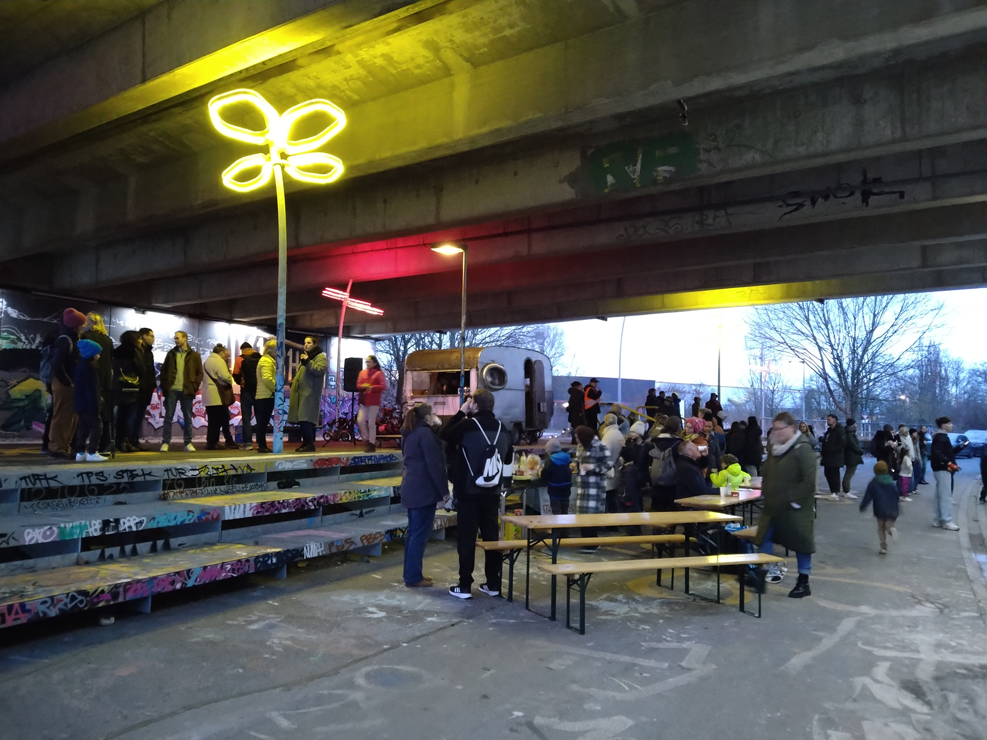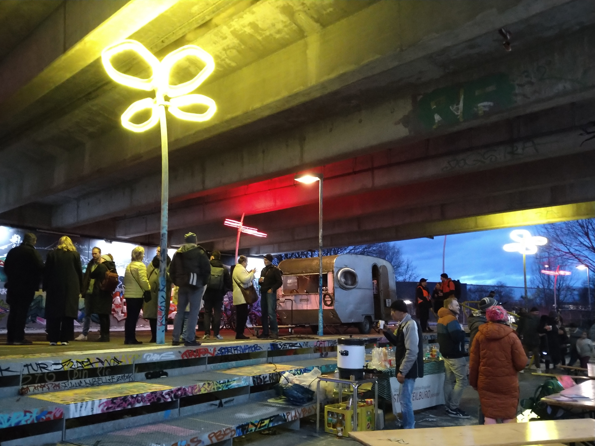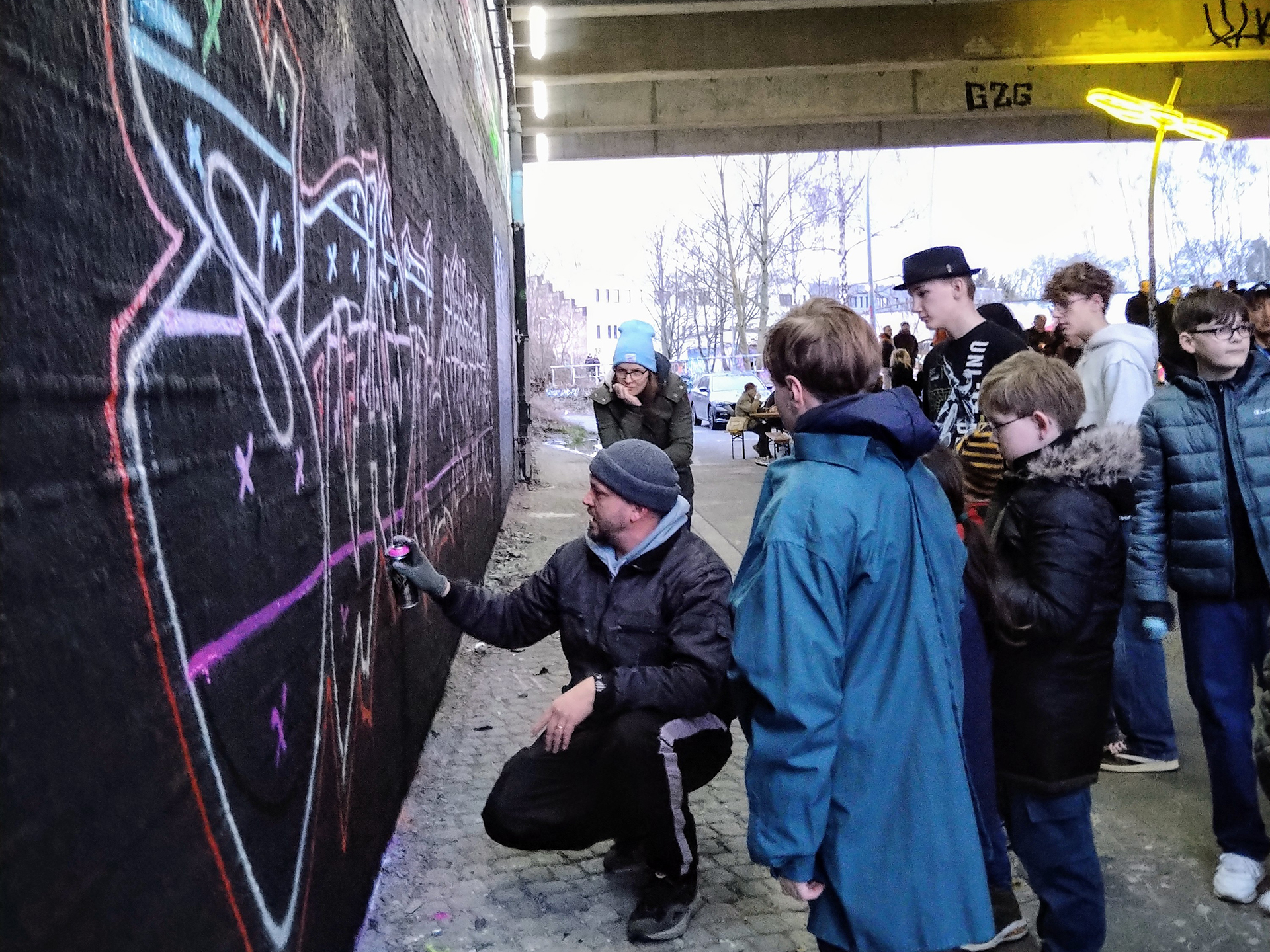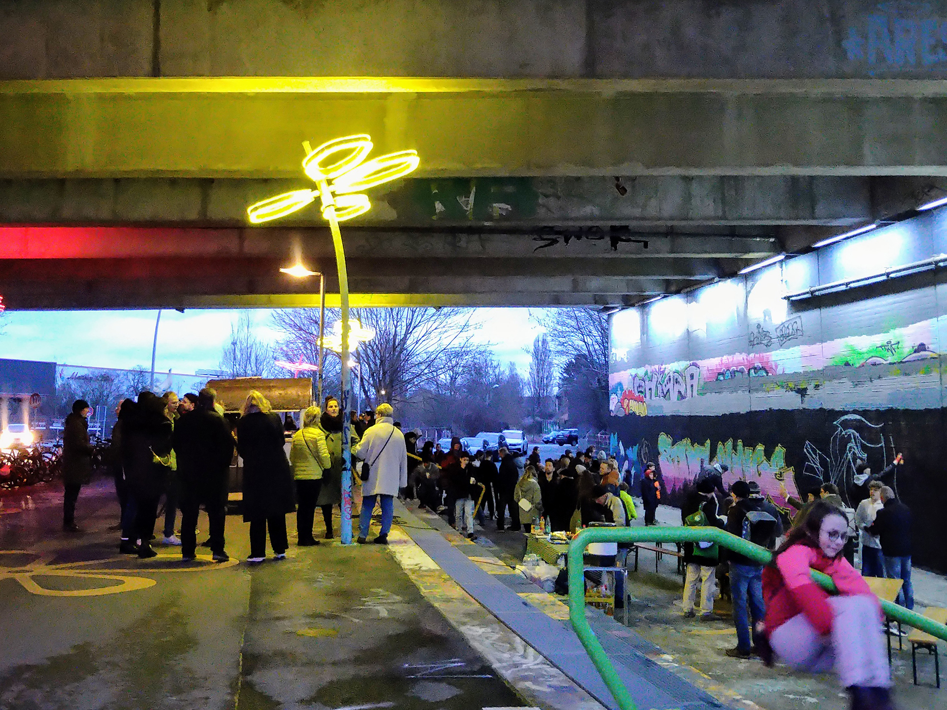 Doch der Ort sollte mehr werden als nur ein Hingucker. Wir wollten eine Stadtlounge schaffen – einen sicheren, offenen Raum mit Aufenthaltsqualität. Die bekannten Graffiti-Wände verdienen schließlich eine Bühne: Sie bilden eine Galerie im Freien, deren Ausstellung sich ständig wandelt.