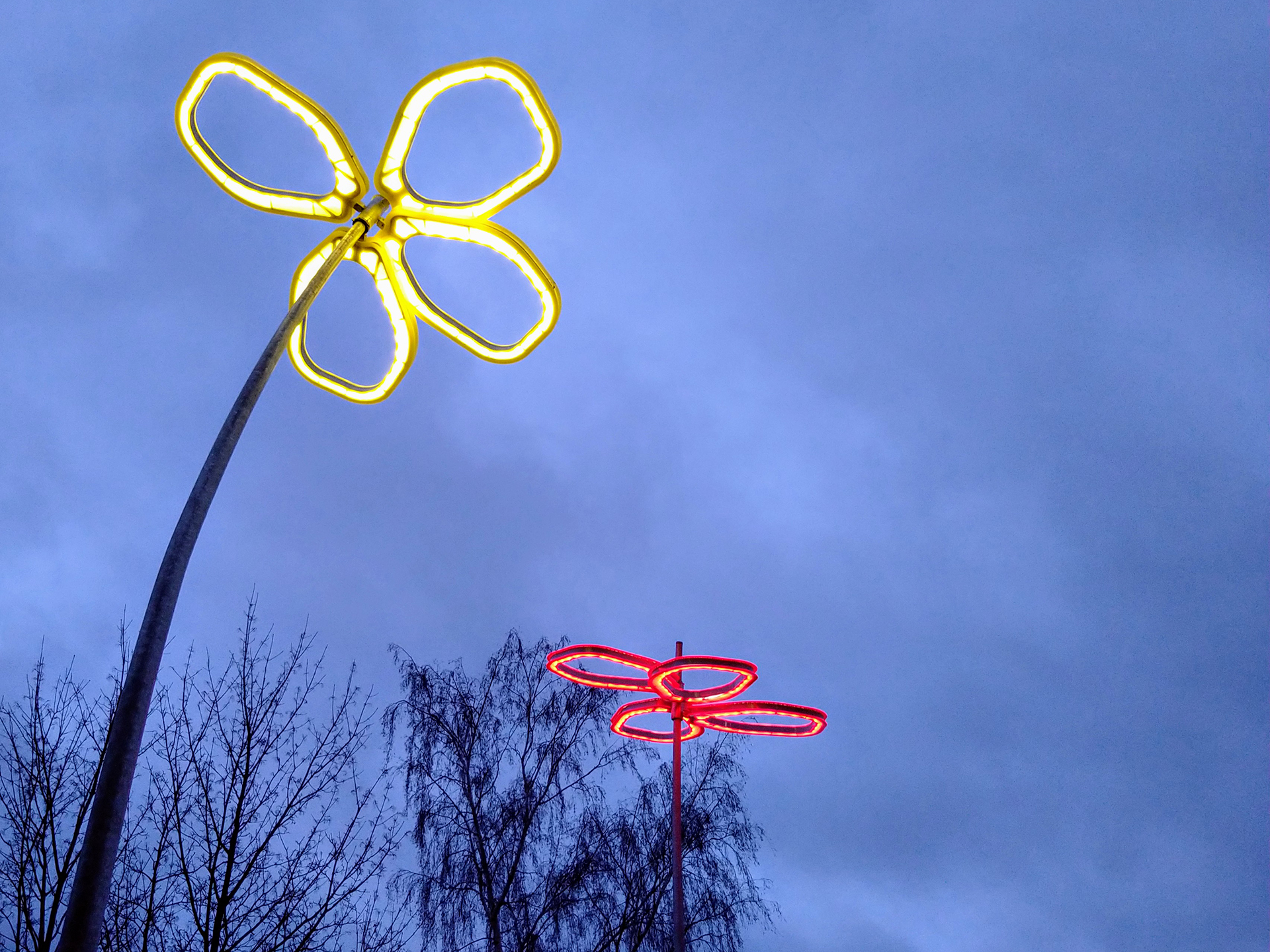 So entstand die Idee der übergroßen Blumenleuchten: farbenfroh, auffällig und ein bisschen verspielt – genau wie der Ort selbst. Wir wünschten uns, dass die Menschen später sagen: „Wir treffen uns bei den Blumen, gehen dann zum Konzert oder holen uns ein Eis.“ Ein freundlicher Willkommensgruß am Eingang zum Westbahnhof.