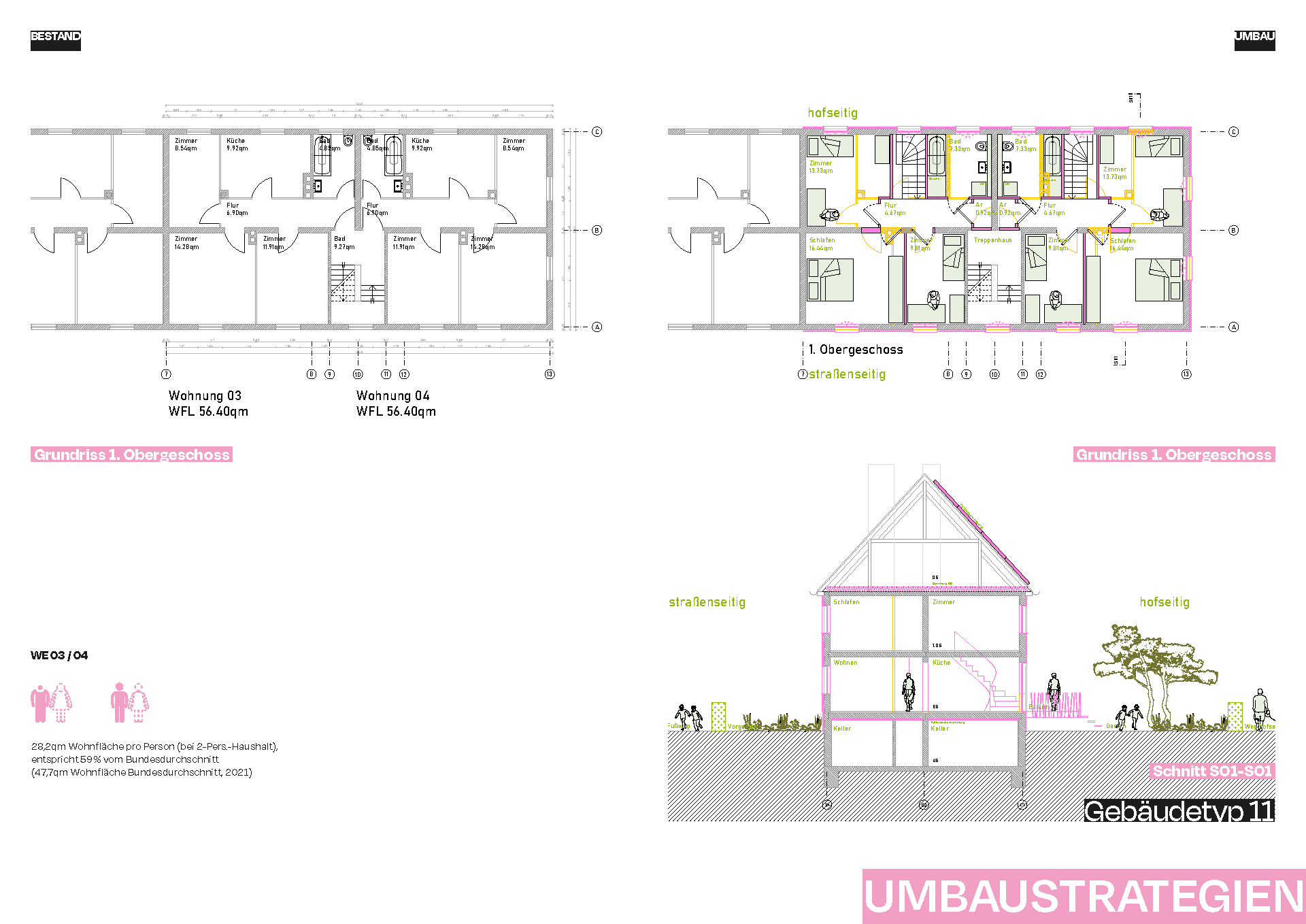 Ein weiterer Schwerpunkt liegt auf der exemplarischen Untersuchung und Modernisierung einzelner Gebäudetypen und Wohnungslösungen. Ziel ist es, energieeffiziente, ökonomische und sozial ausgewogene Wohnformen zu schaffen, die den Bedürfnissen unterschiedlicher Bewohnertypen gerecht werden und soziale Vielfalt sowie Zusammenhalt fördern.