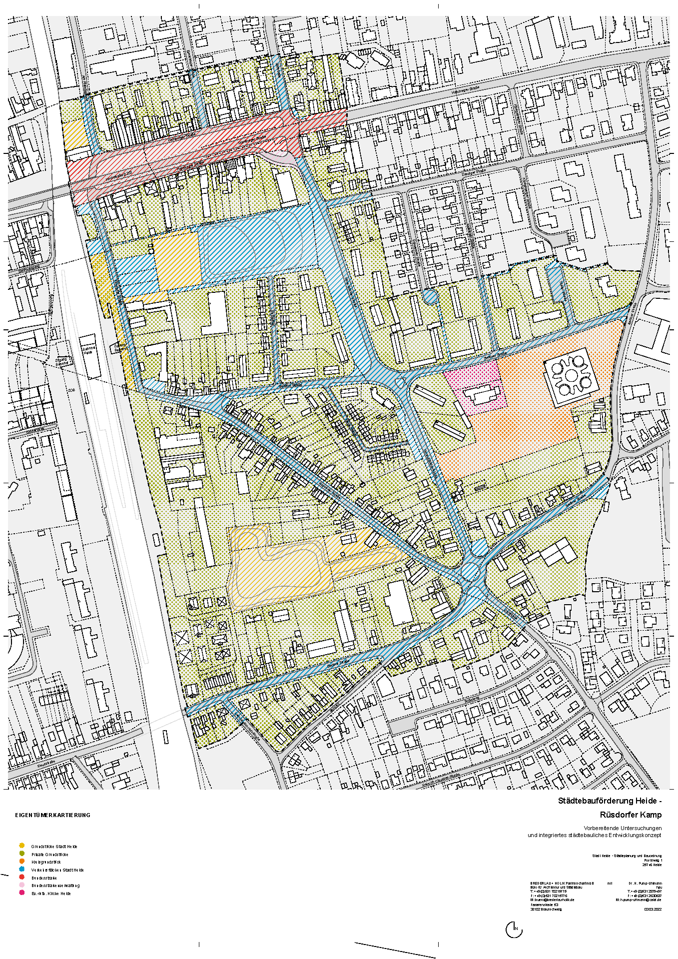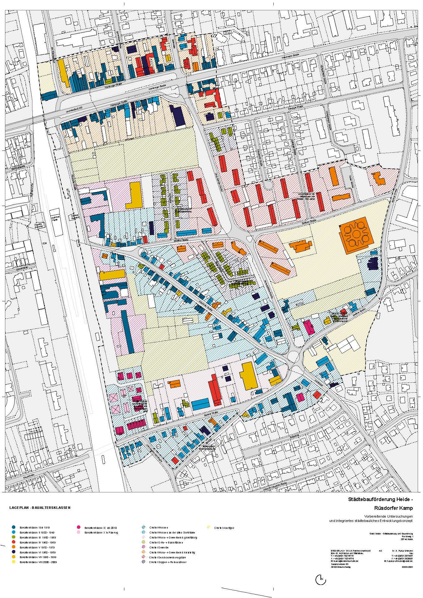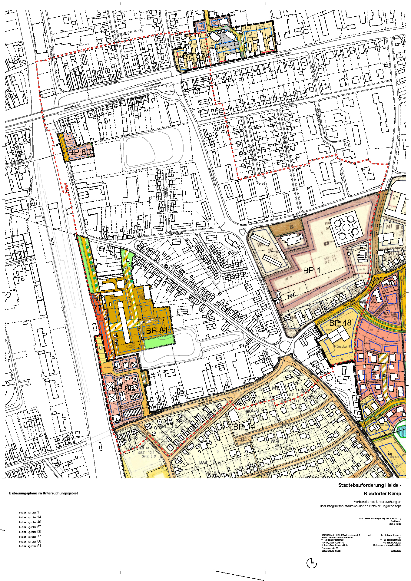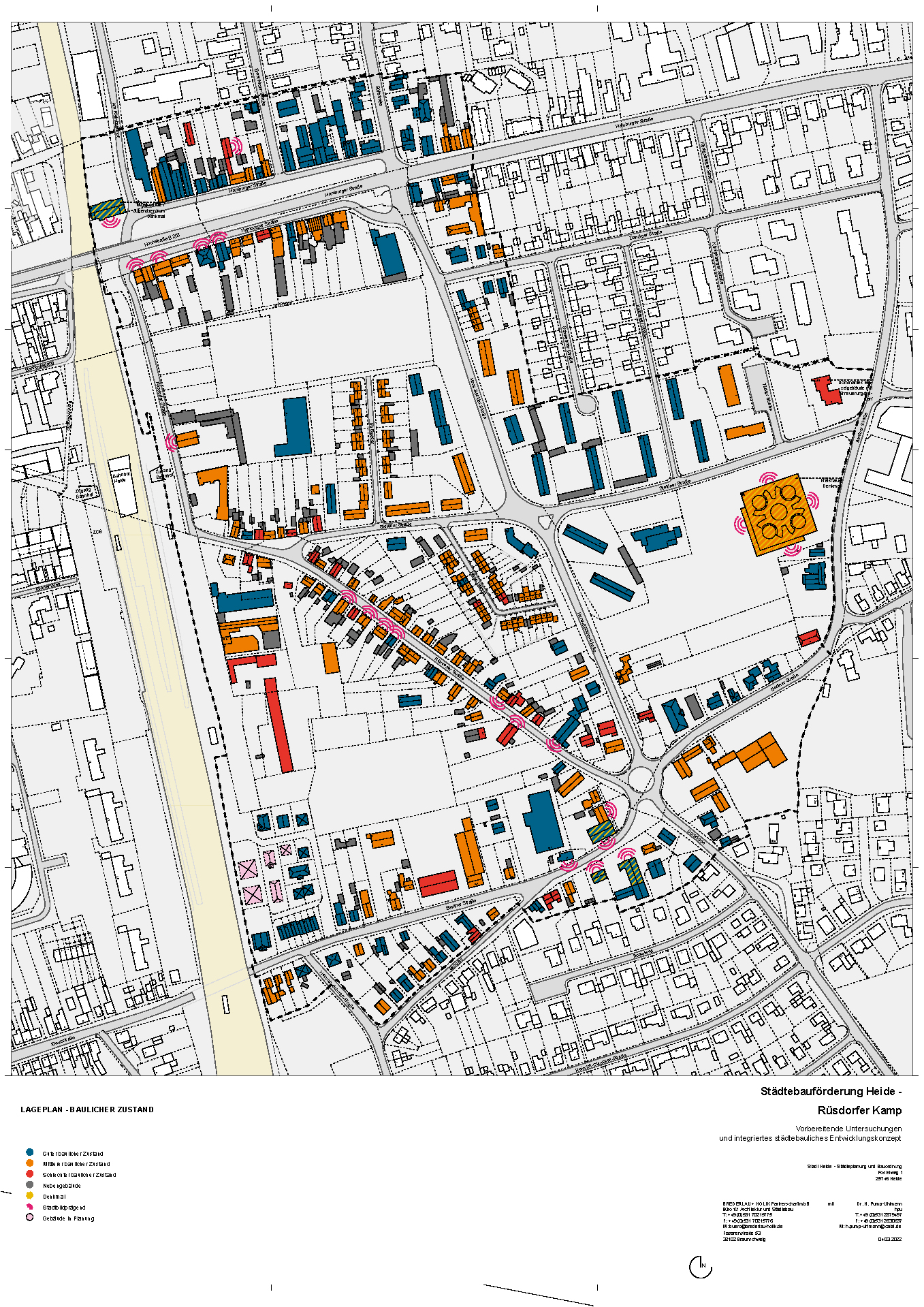 Das insgesamt ca. 32 ha große Untersuchungsgebiet „Rüsdorfer Kamp“ befindet sich in direkter Nähe zur Innenstadt von Heide. Aufgrund seiner Lage und guten Anbindungen hat das Quartier ein großes Entwicklungspotential. Trotz seiner Lagegunst wird das Quartier durch Barrieren wie die angrenzende Bahntrasse und die Hochstraße B 203 massiv beeinträchtigt.